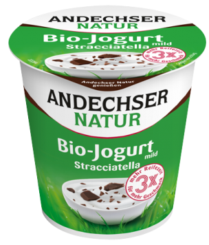 Yaourt biologique stracciatella – 3,8% de matière grasse dans la partie lactée.